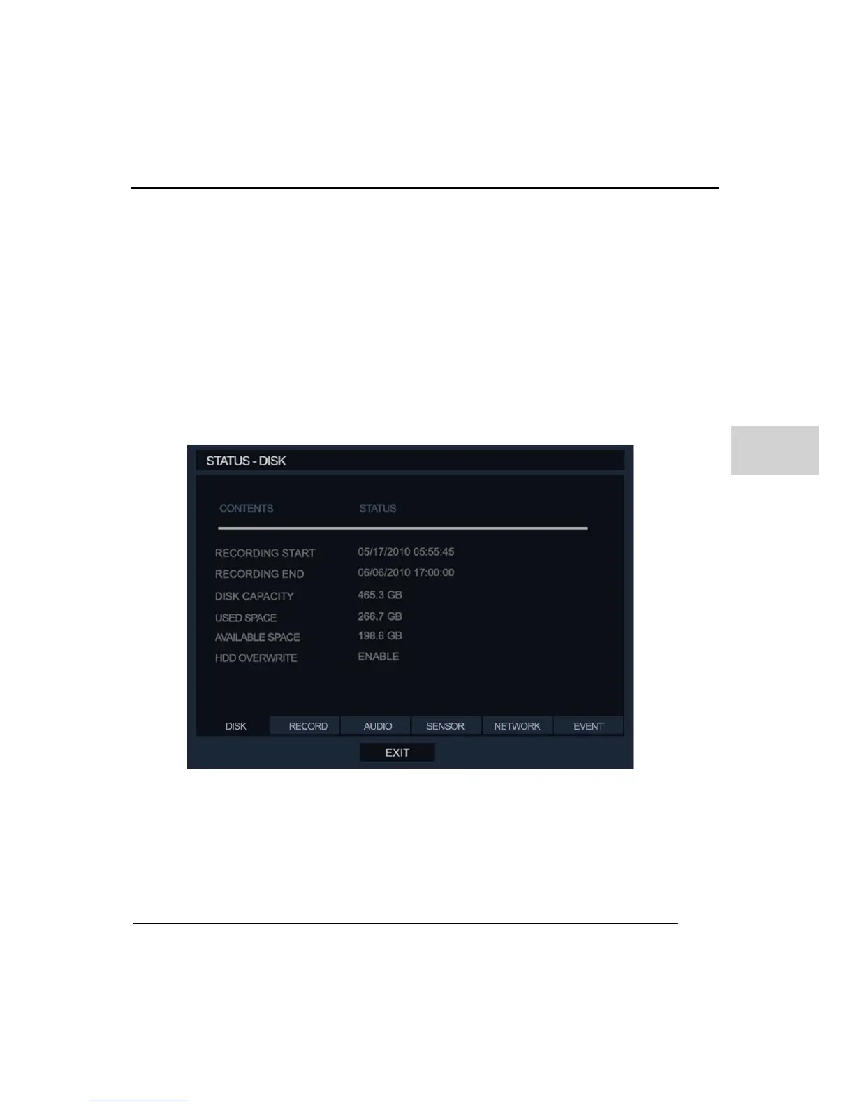 Recording End: This shows the last time that data was recorded by the DVR