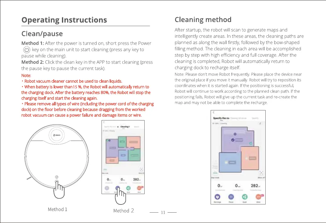360 S9 - Operating Instructions; Clean;pause; Cleaning method