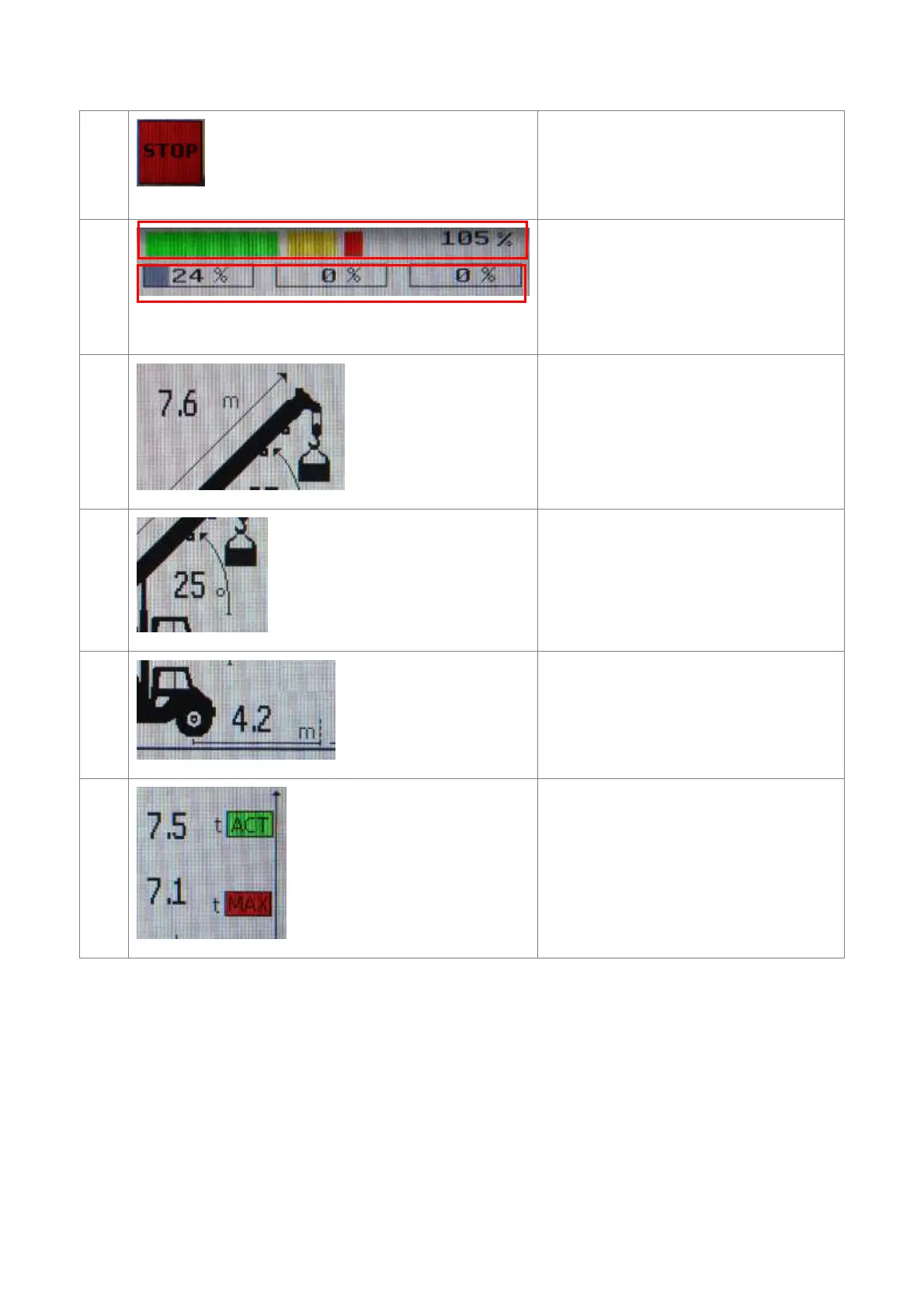 Indication of the main boom’s operating