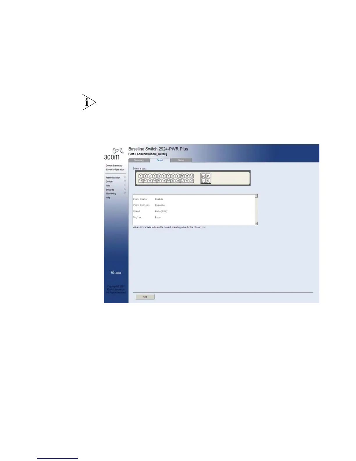 Viewing Port Details The Port Detail Page displays the current port parameters for specific