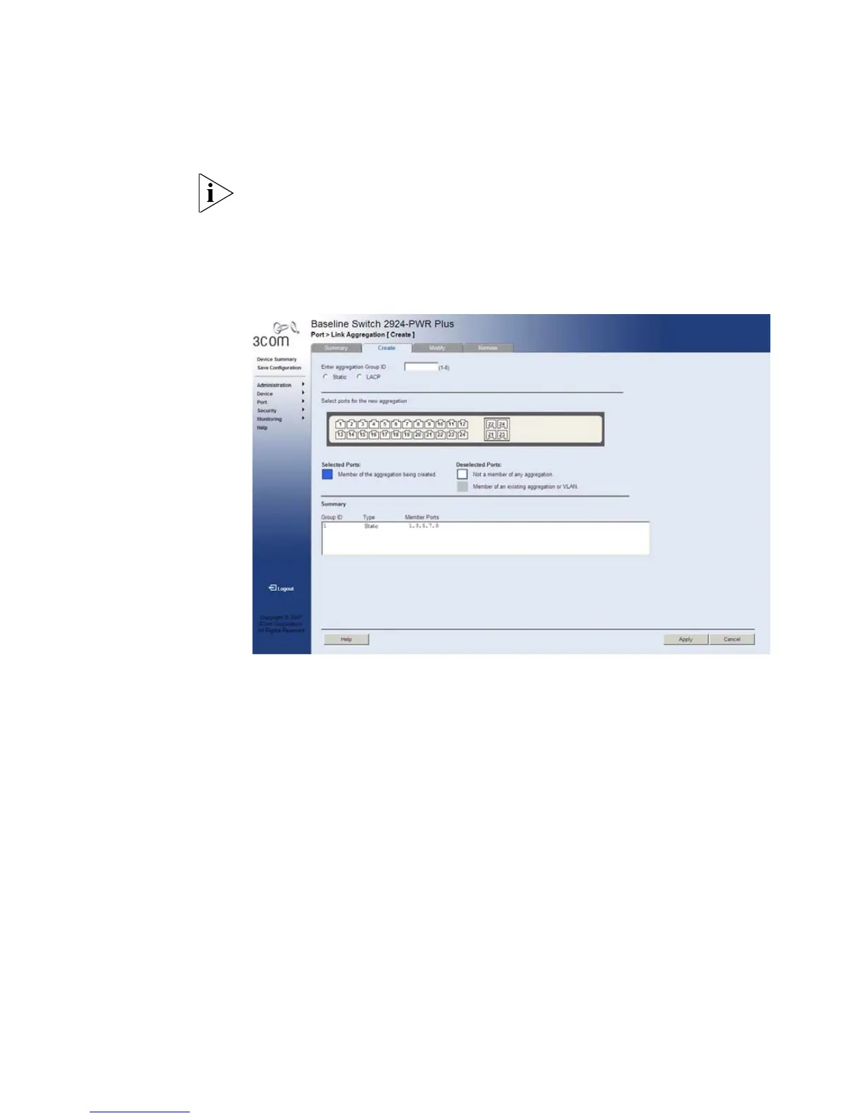 1 Click Port > Link Aggregation > Create. The Link Aggregation Create
