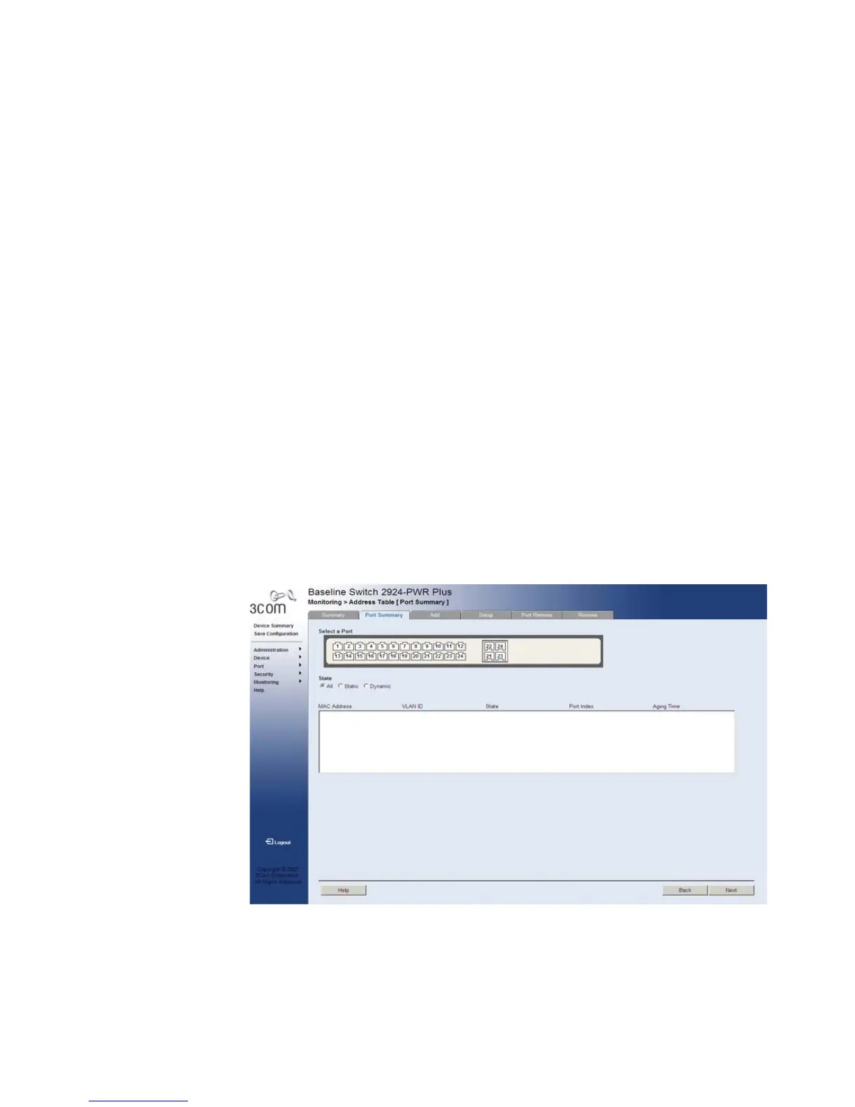 1 Click Monitoring > Address Table > Port Summary. The Port Summary