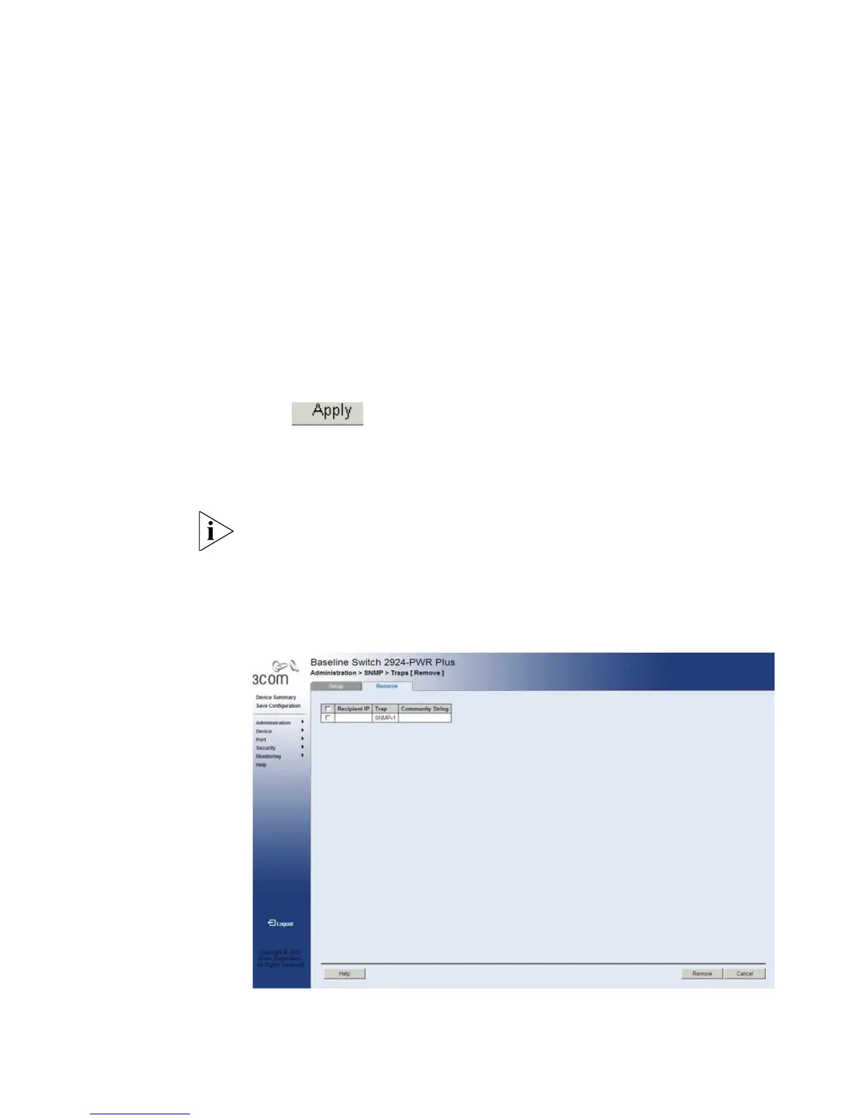 1 Click Administration > SNMP > Traps > Remove. The SNMP Traps