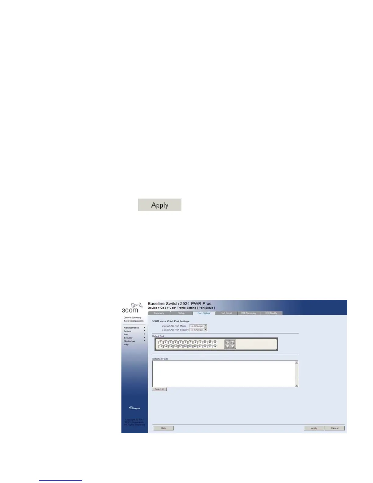 The Voice VLAN Port Setup Page contains information for defining Voice