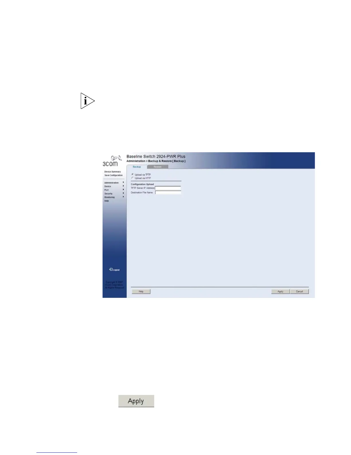 1 Click Administration > Backup & Restore > Backup. The Backup Page
