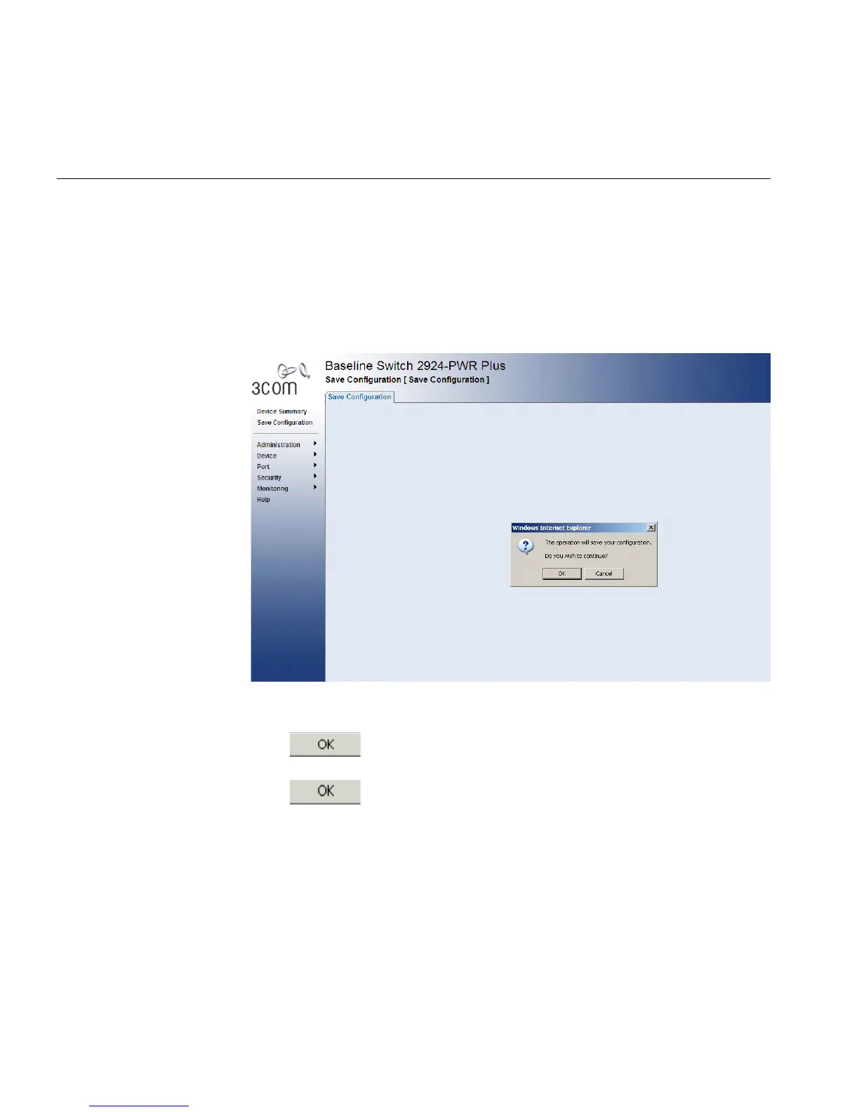 A message appears: The operation will save your configuration. Do you