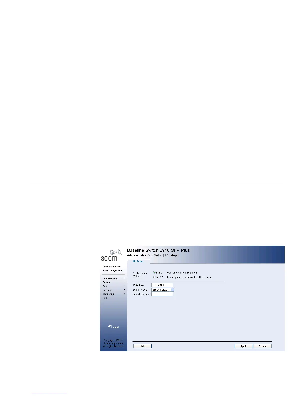 1 Click Administration > IP Setup. The IP Setup Page opens: