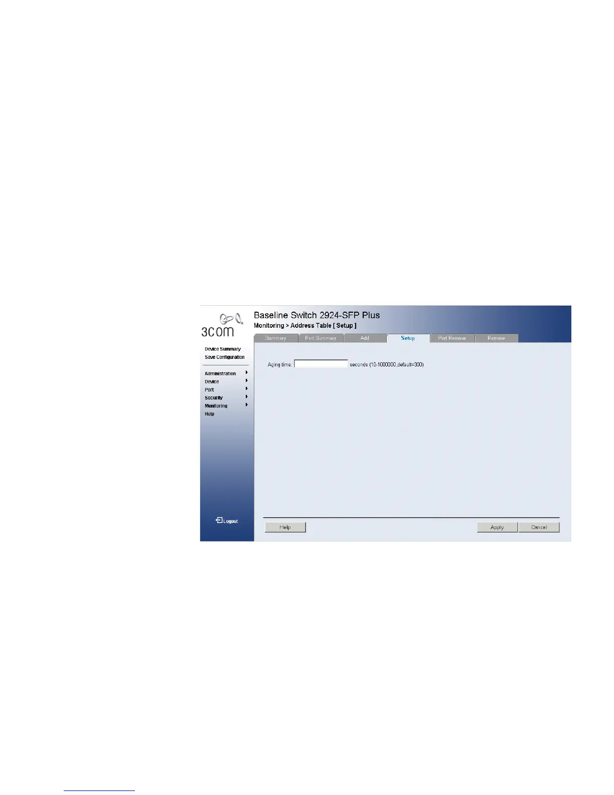 Defining Aging Time The Address Table Setup Page allows the network manager to define the
