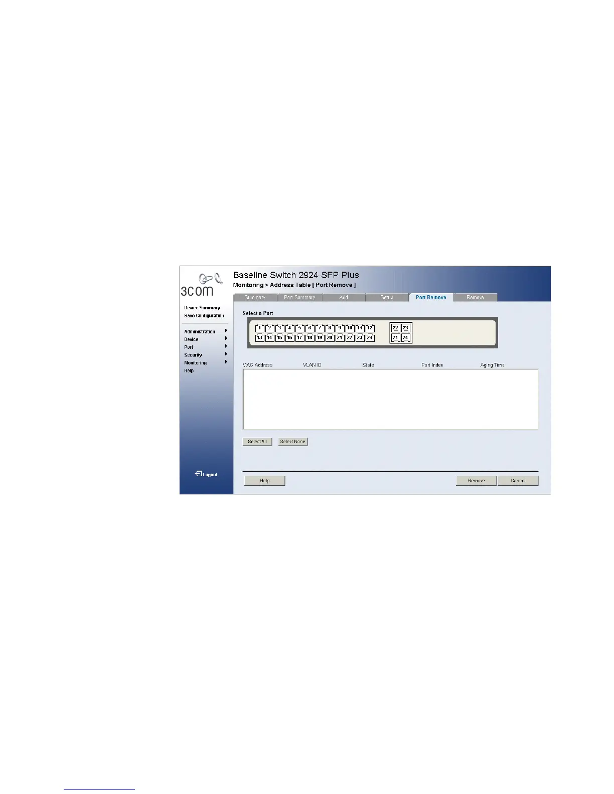 1 Click Monitoring > Address Tables > Port Remove. The Port Remove