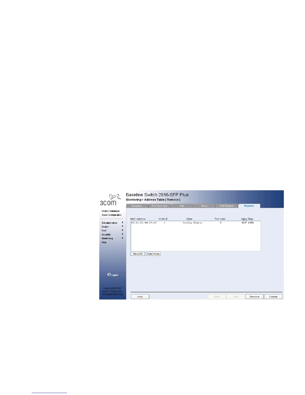 1 Click Monitoring > Address Table > Remove. The Address Table