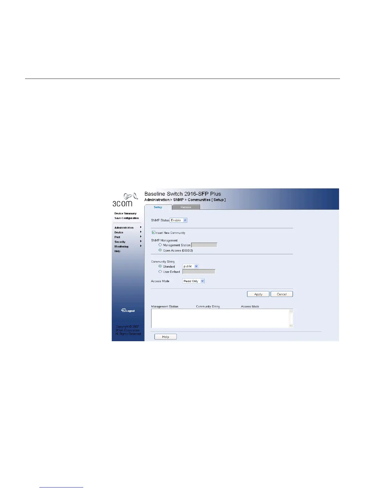 1 Click Administration > SNMP > Communities > Setup. The SNMP