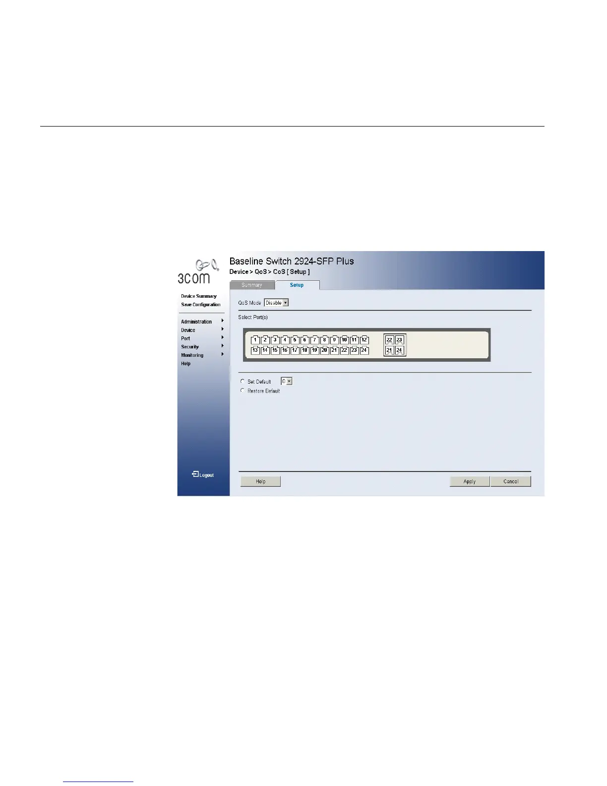 1 Click Device > QoS > CoS Setup. The CoS Setup Page opens: