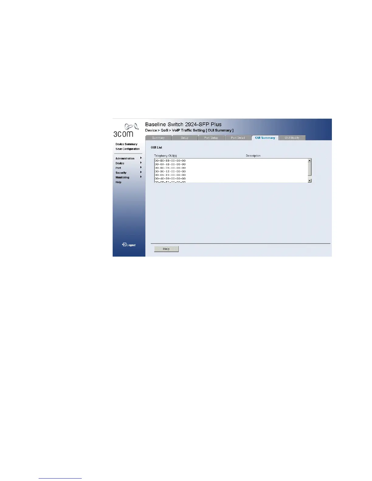 1 Click Device > QoS > VoIP Traffic Setting > OUI Summary. The Voice