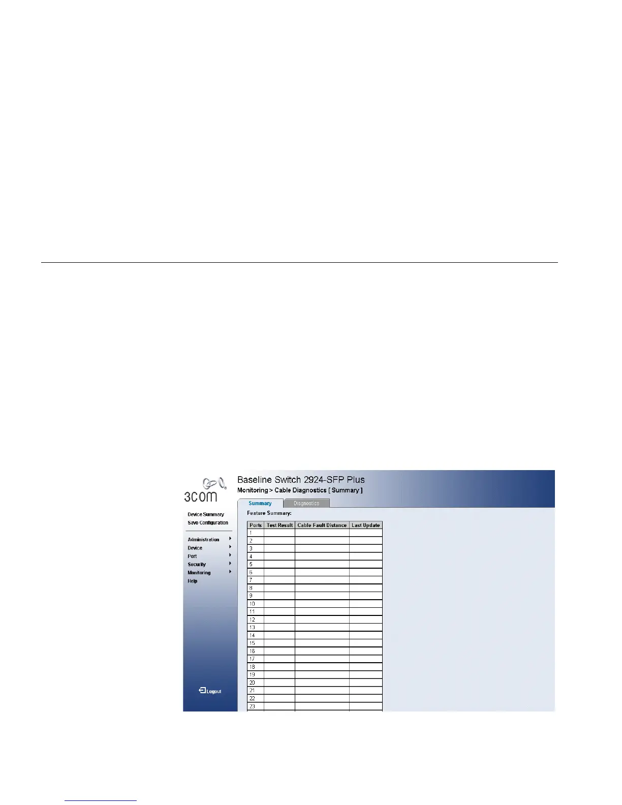 1 Click Monitoring > Cable Diagnostics > Summary. The Cable
