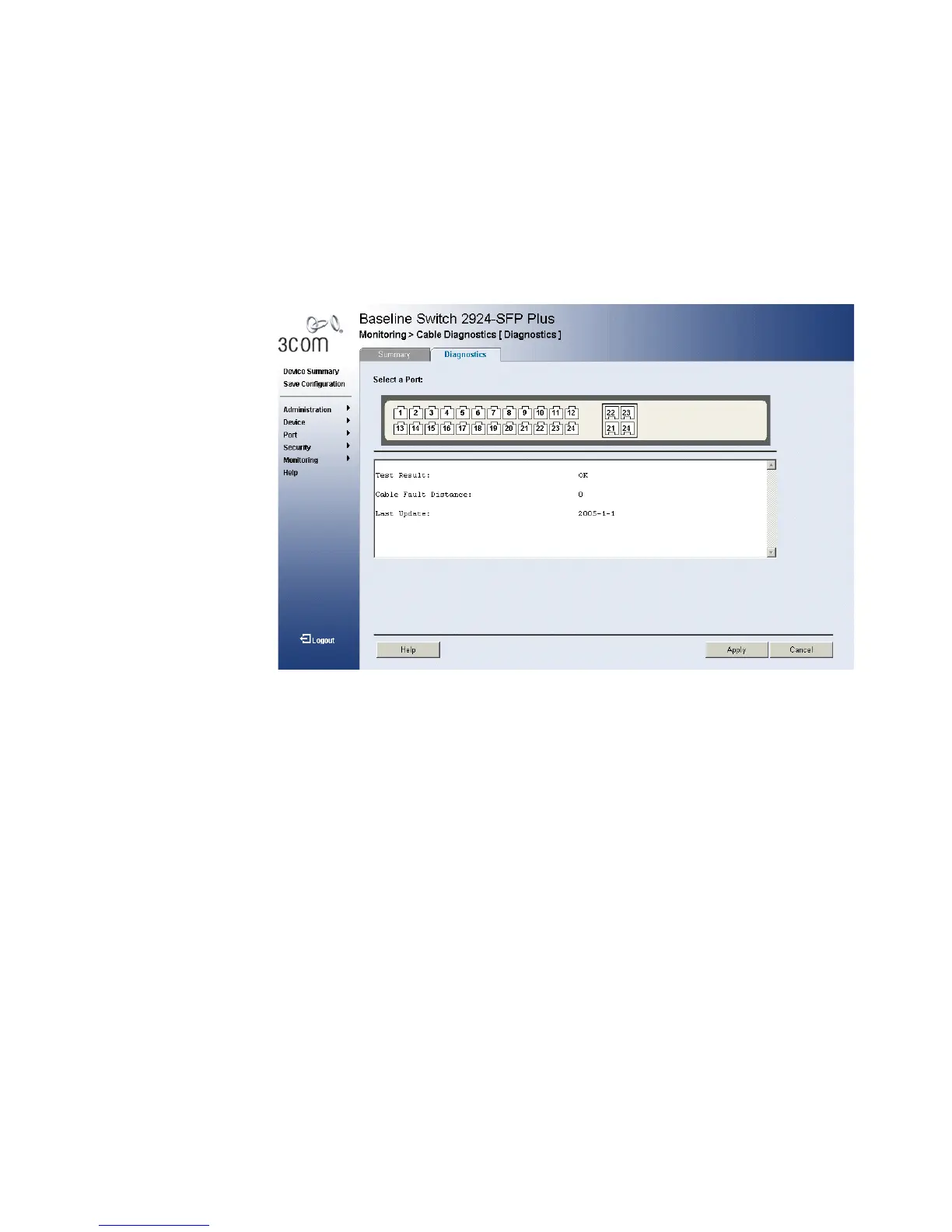 1 Click Monitoring > Cable Diagnostics > Diagnostics. The Diagnostics