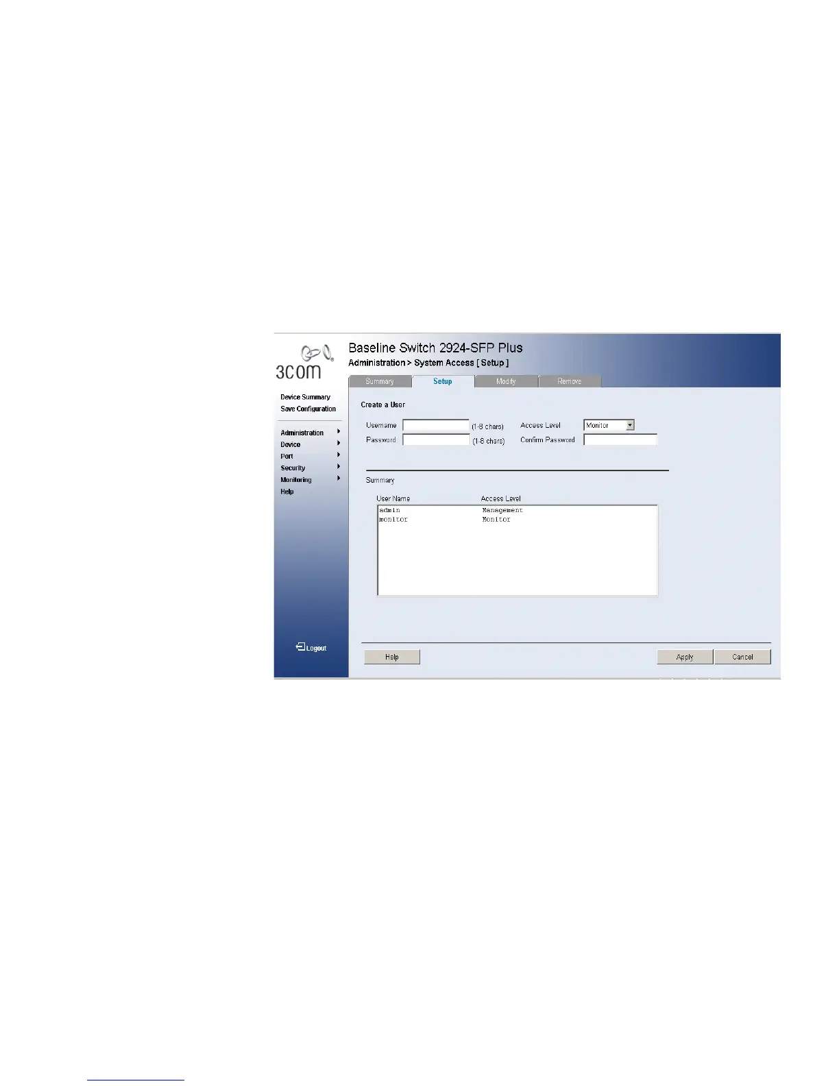 The System Access Setup Page allows network administrators to