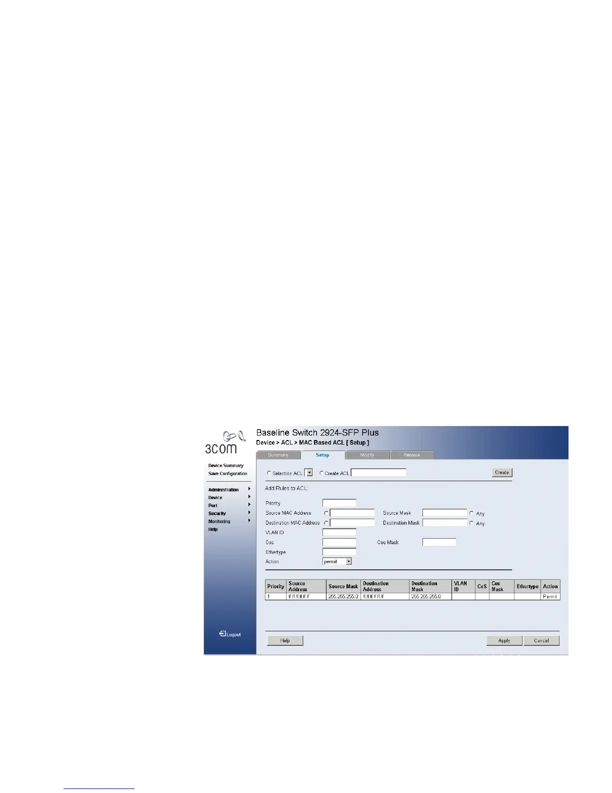 1 Click Device > ACL > MAC Based ACL > Setup. The MAC Based ACL