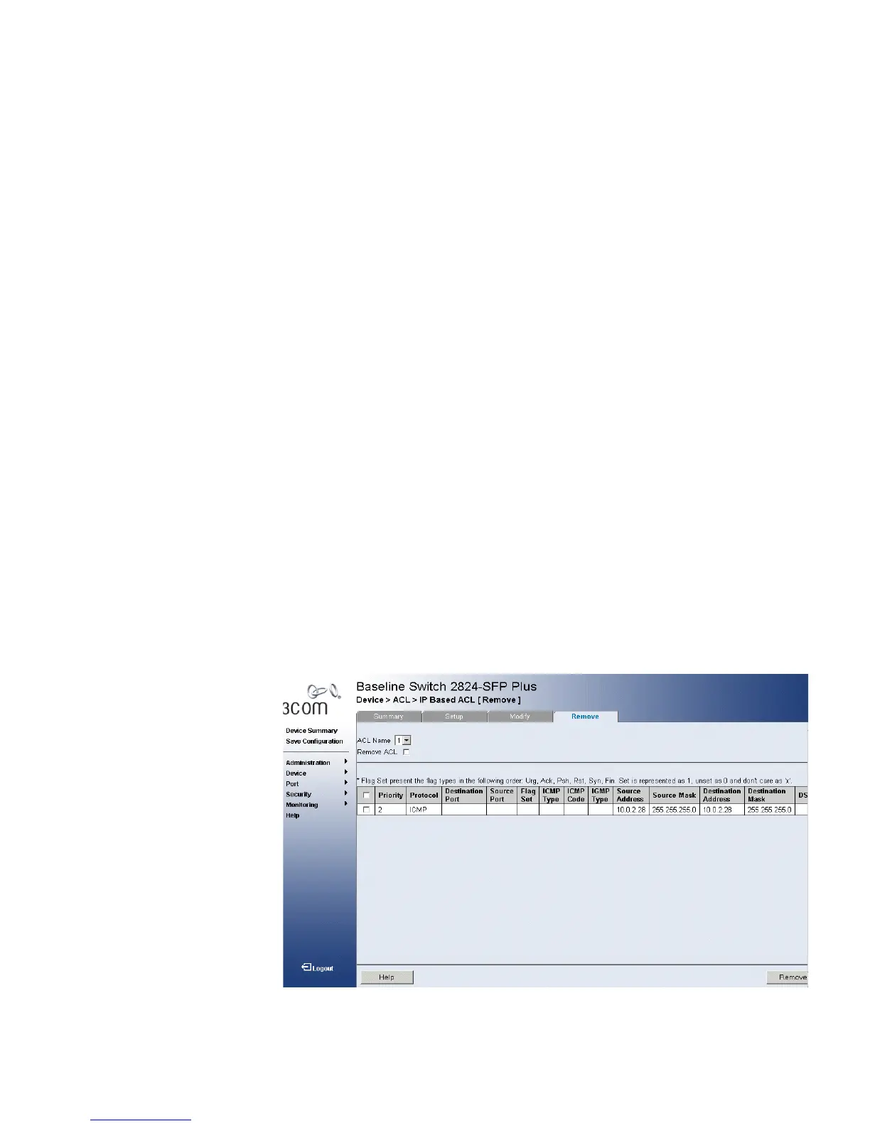 Figure 35 IP Based ACL Remove Page