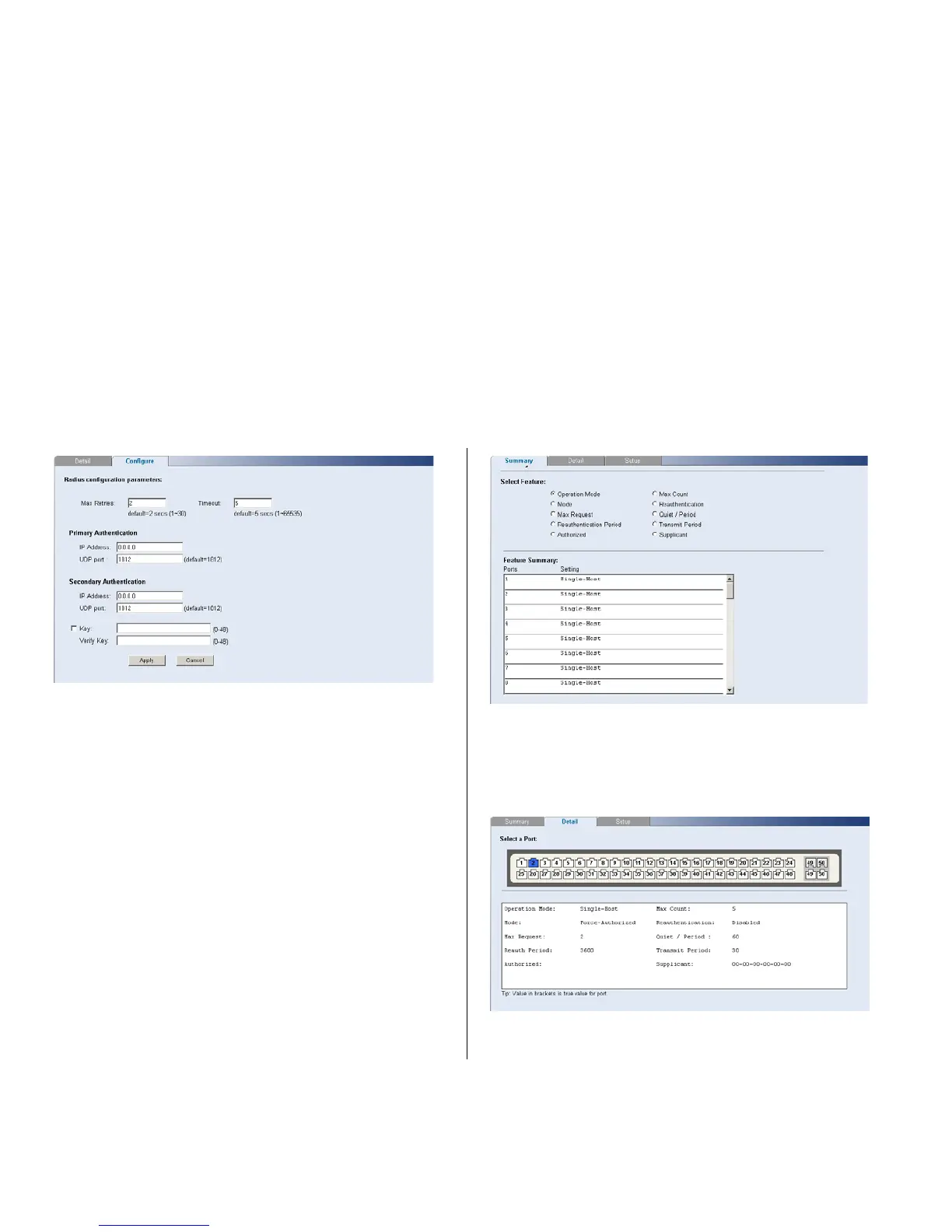 Use the Detail tab to display detailed 802.1X
