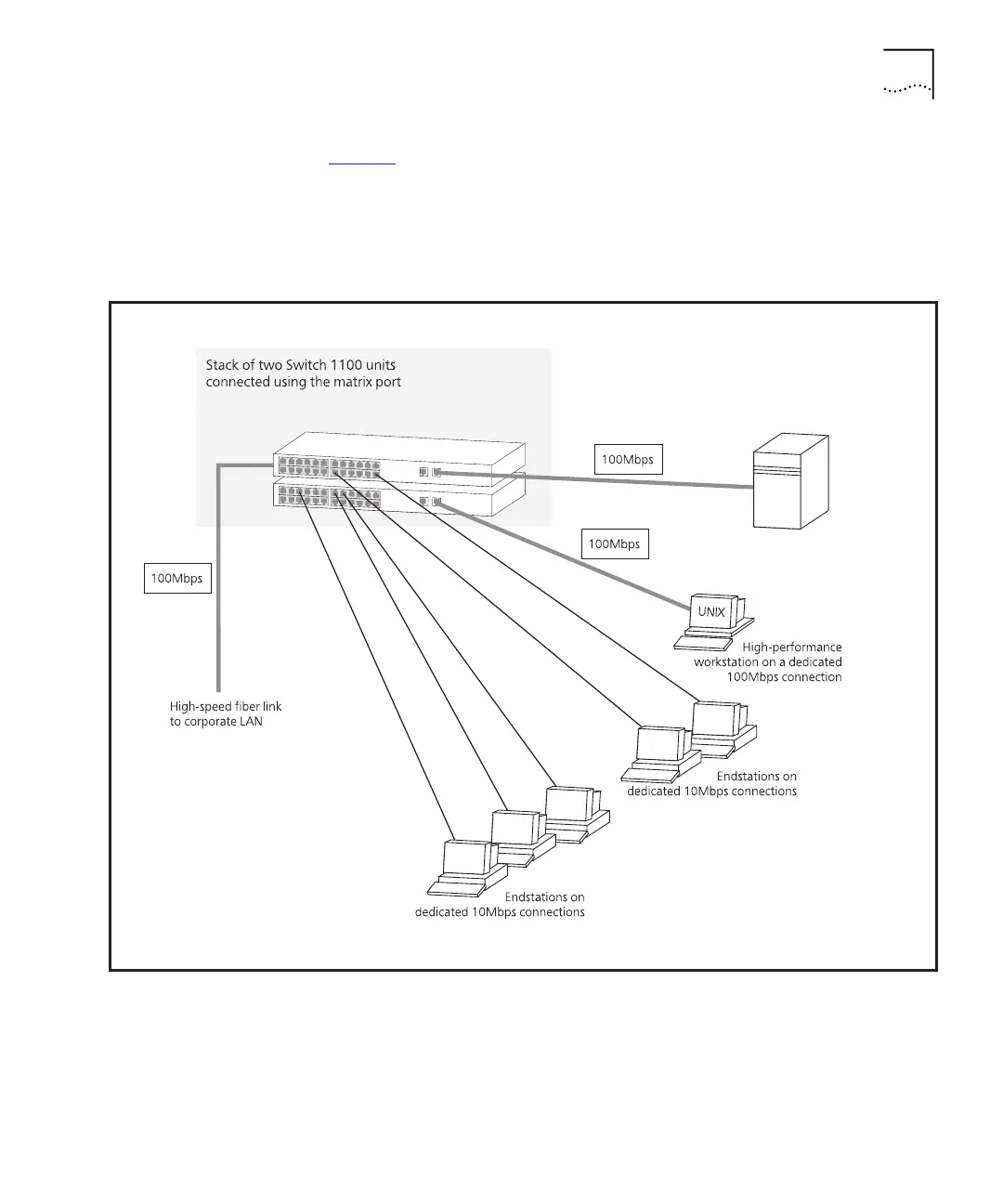 single endstation per port. Local servers are connected via 100Mbps Fast