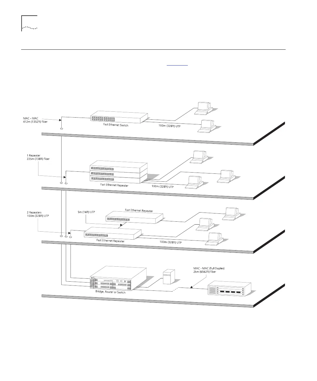 The topology rules for 100Mbps Fast Ethernet are slightly different to