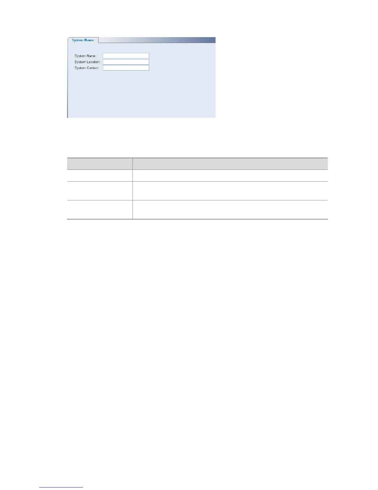 System Name Defines the user-defined switch name. The field length is 0-30 characters