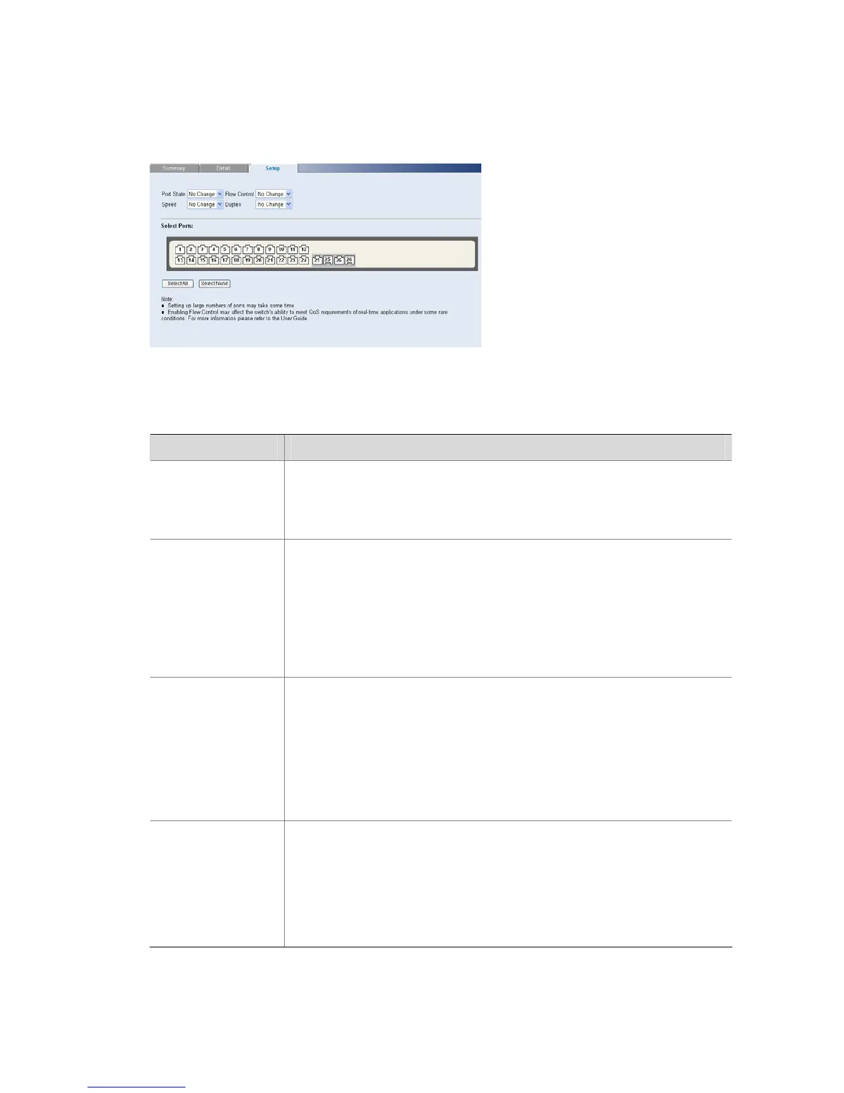 The Port Setup Page allows network managers to configure port parameters for specific ports.