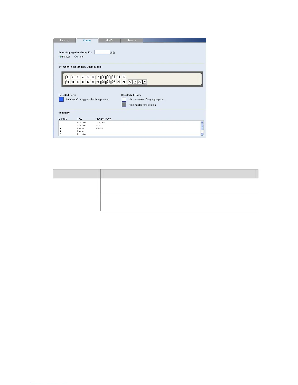 Click Port > Link Aggregation > Create. The Link Aggregation Create Page opens.