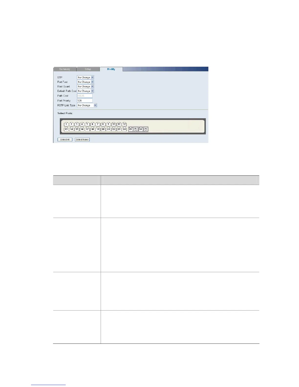 Table 3-26 STP Interface Parameters Modify Page item description