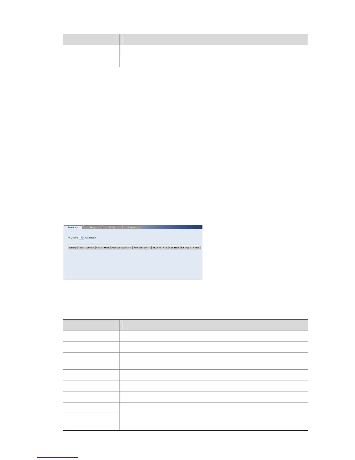 Table 3-31 MAC Based ACL Summary Page item description