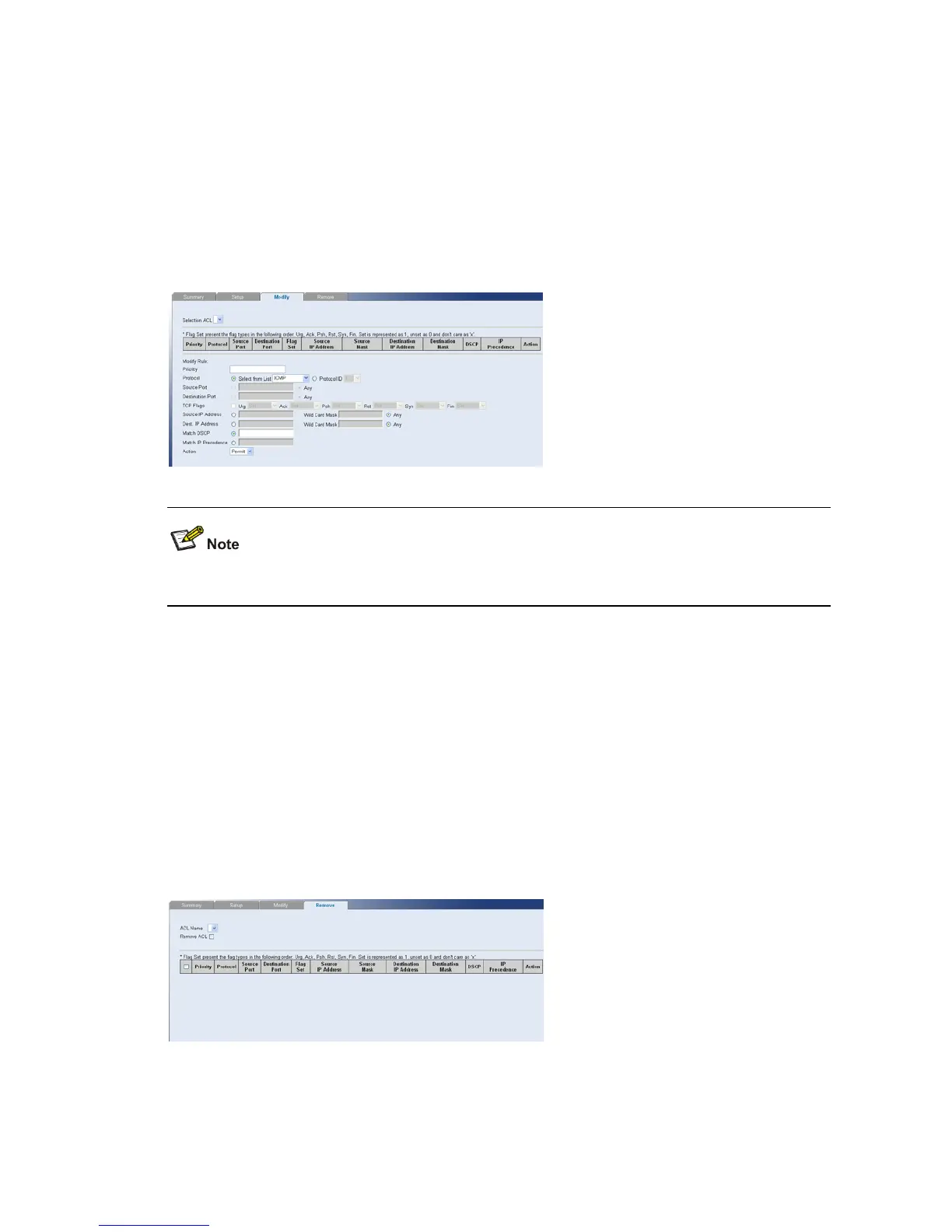 The IP Based ACL Modify Page allows the network administrator to modify IP Based ACL rules.