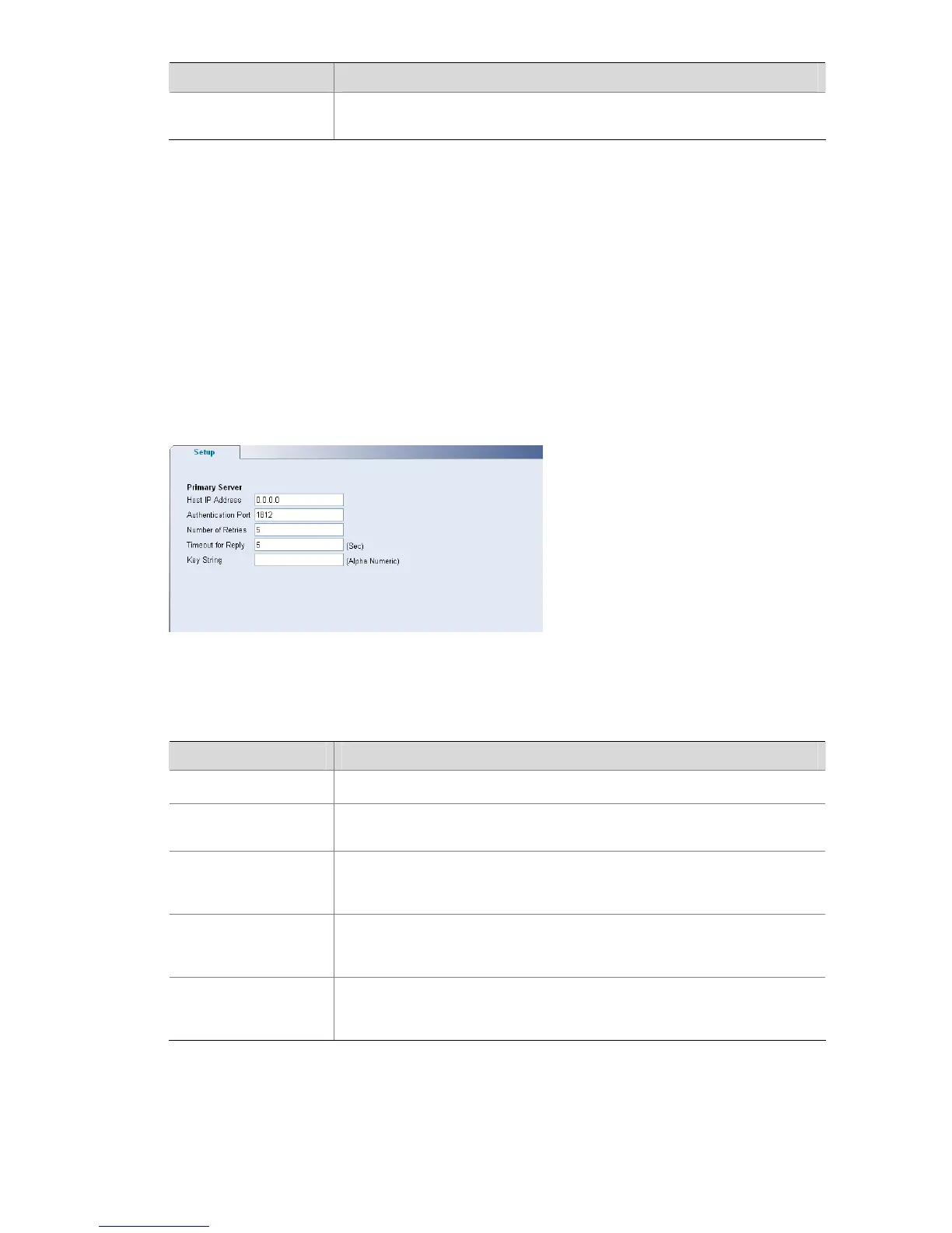 The Radius Client Setup Page allows the administrator to configure the parameters for the switch acting