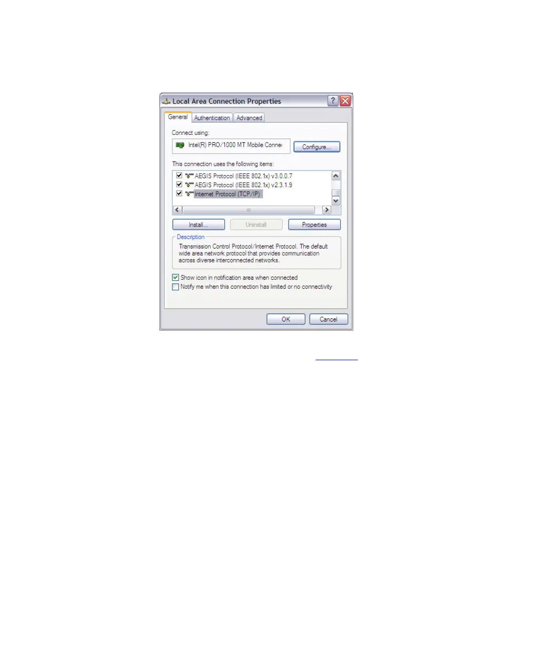 Figure 56 Local Area Connection Properties Dialog Box on Windows XP