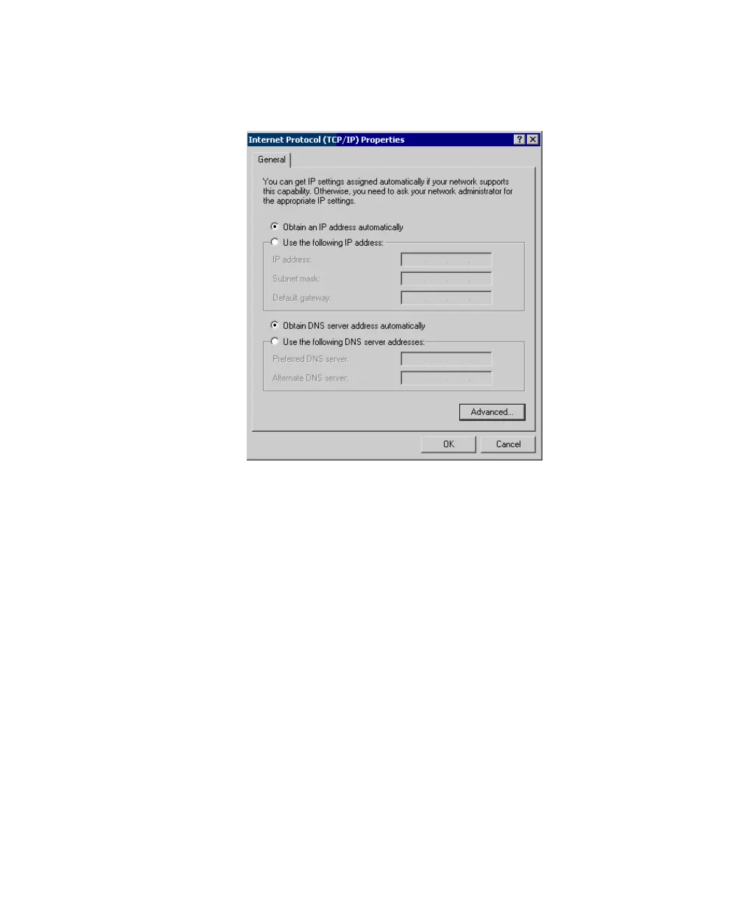 Figure 59 Internet Protocol (TCP/IP) Properties Dialog Box on Windows 2000