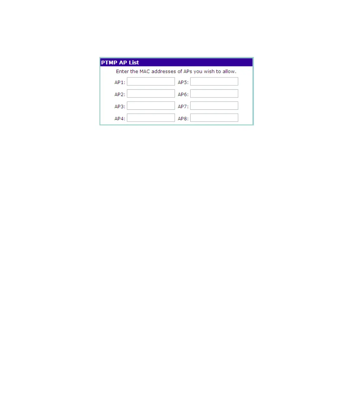 2 Click Set PTMP APs. The PTMP AP List screen appears.