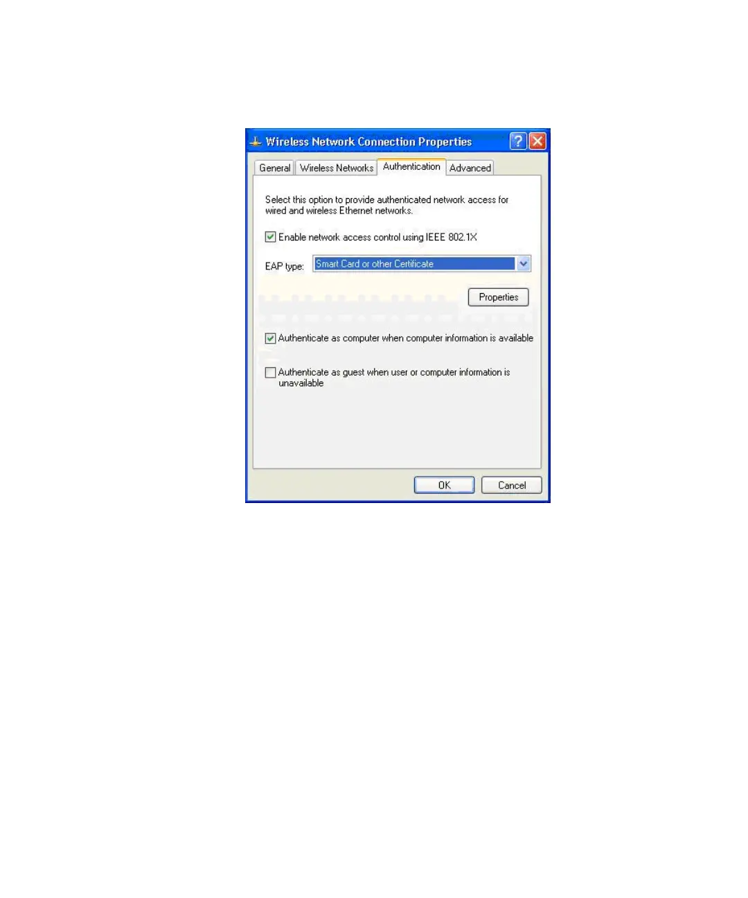 5 In EAP type, verify that Smart Card or other Certificate is selected.