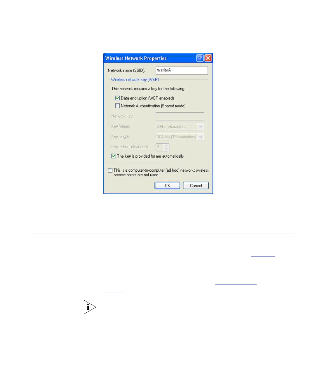 not be selected. Instead, the user must manually enter a WEP key that