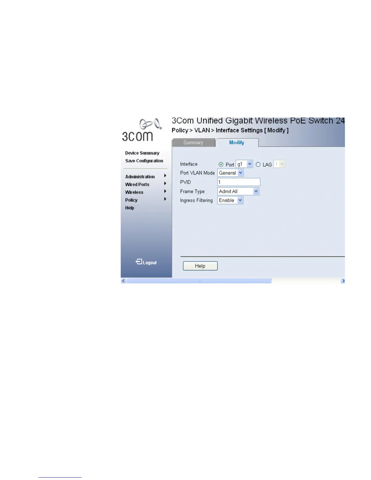 1 Click Policy > VLAN > Interface Settings > Modify. The VLAN Interface