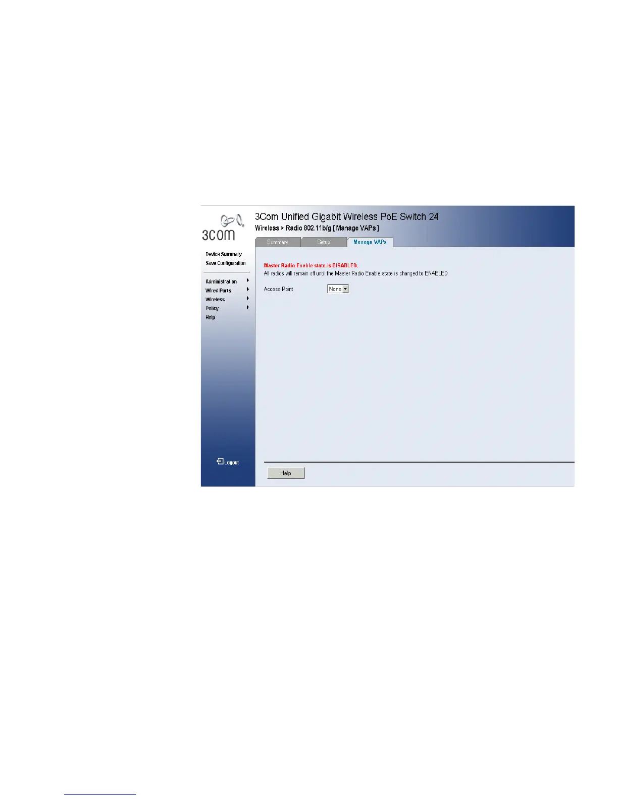 802.11b/g Manage VAPs Page opens: