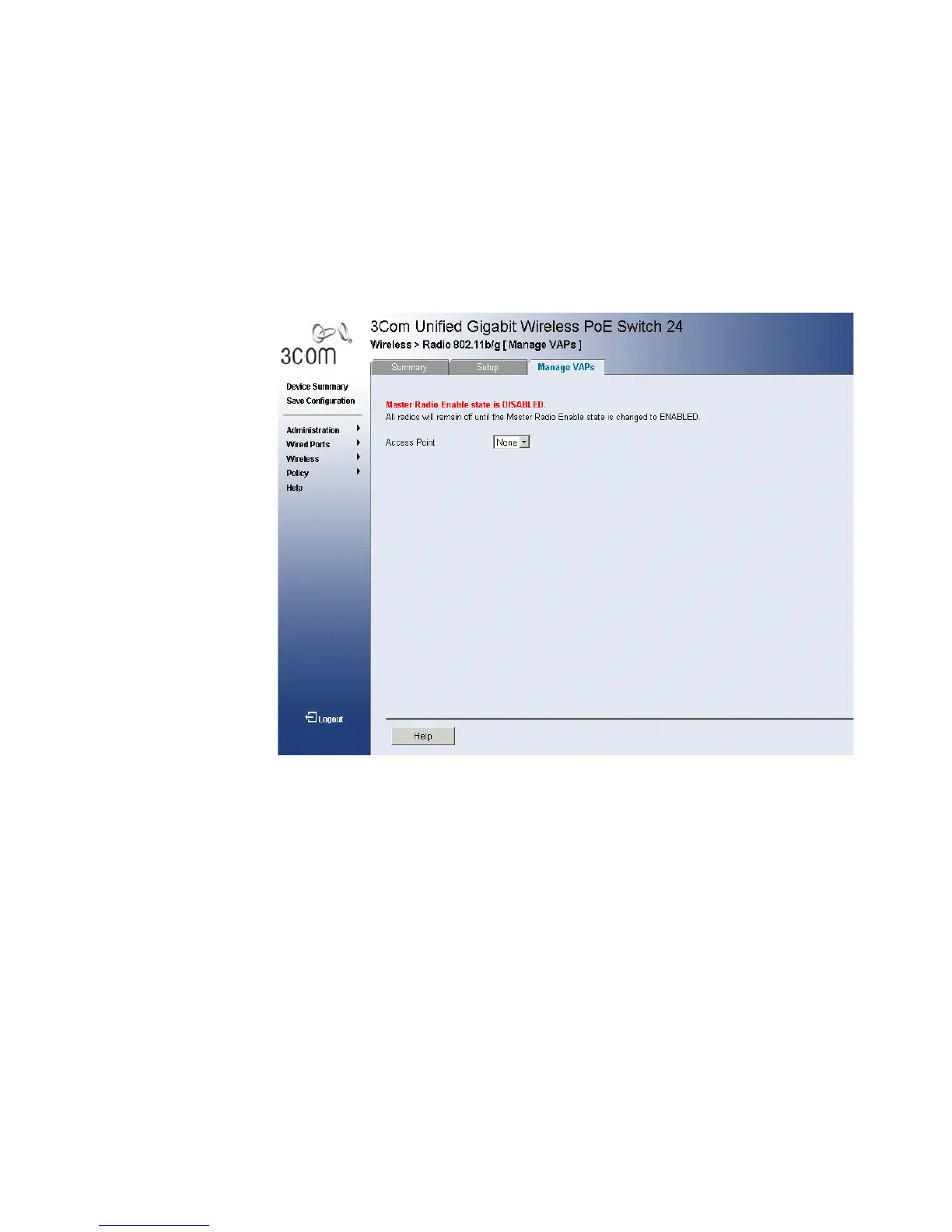 Figure 90 Radio 802.11a Manage VAPs Page