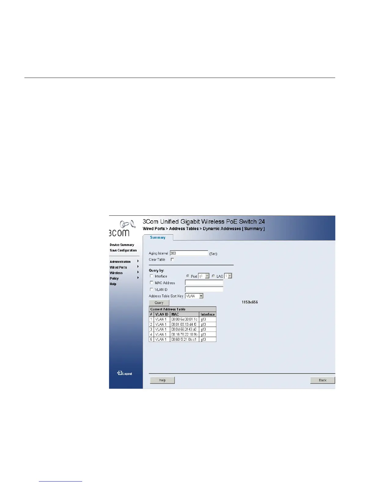 ■ Click Wired Ports >Address Tables > Dynamic Addresses. The