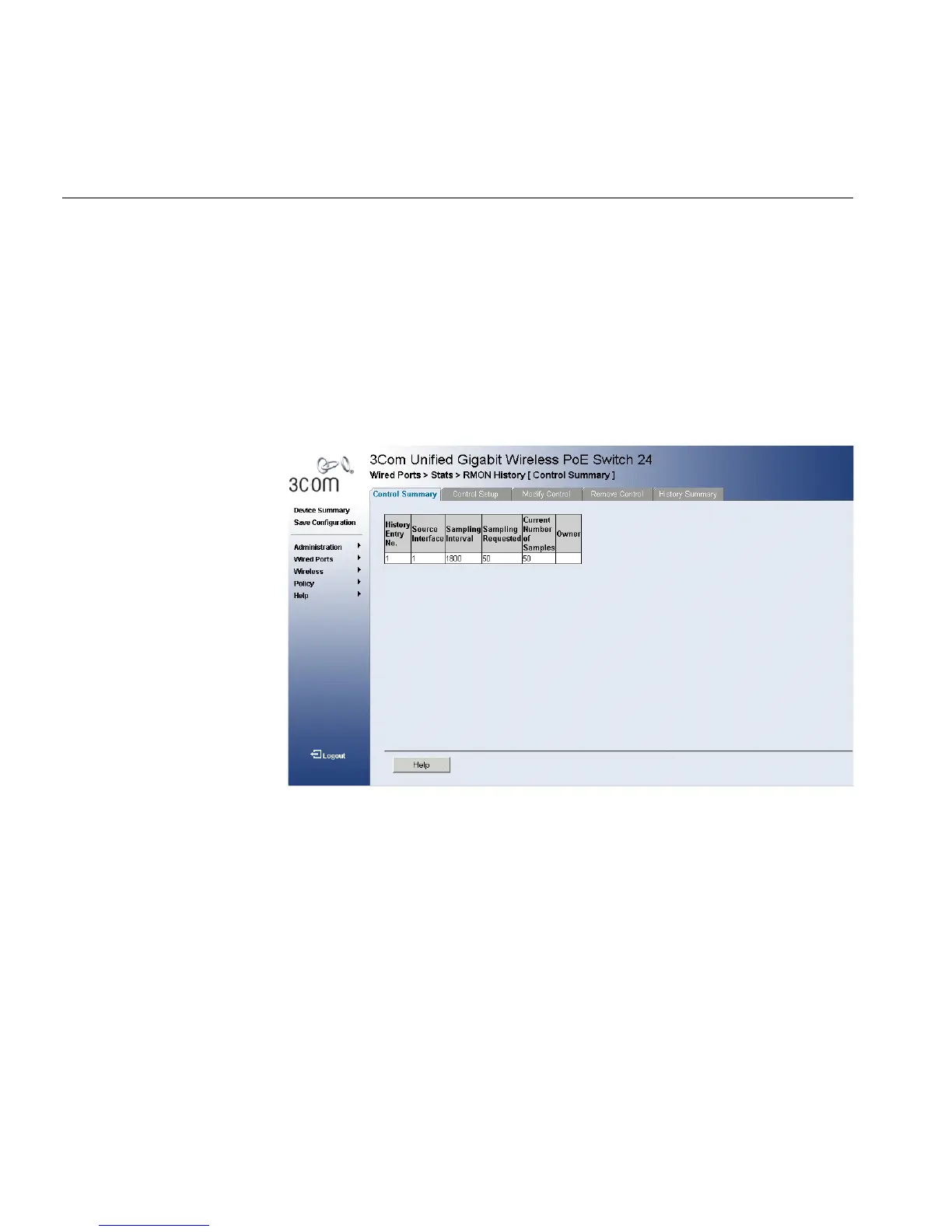 1 Click Wired Ports > Stats > RMON History > Control Summary. The