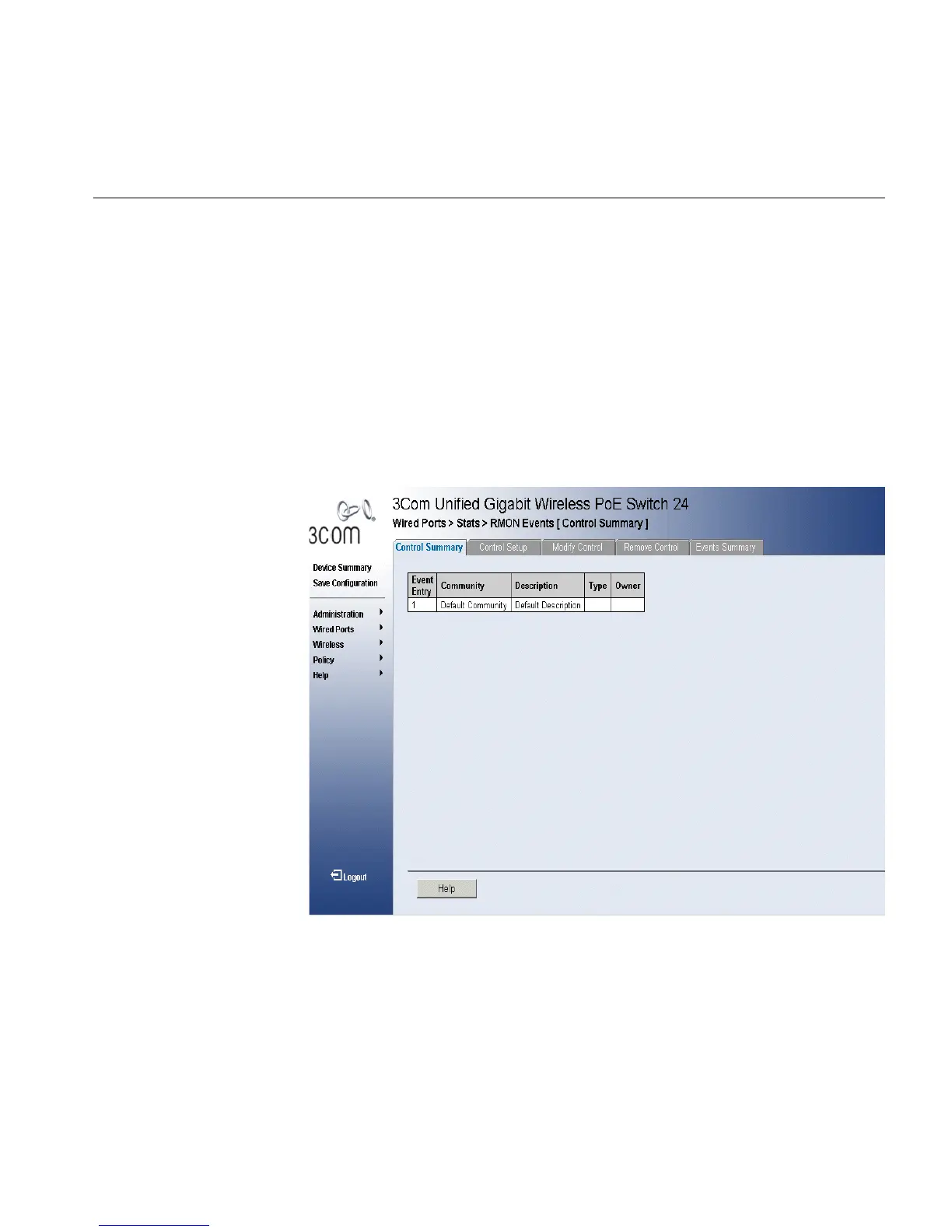 1 Click Wired Ports > Stats > RMON Events > Control Summary. The