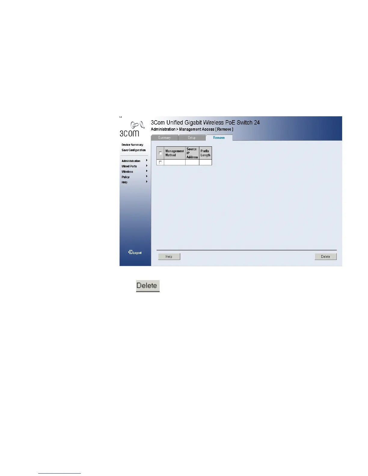 Figure 13 Management Access [Remove] Page