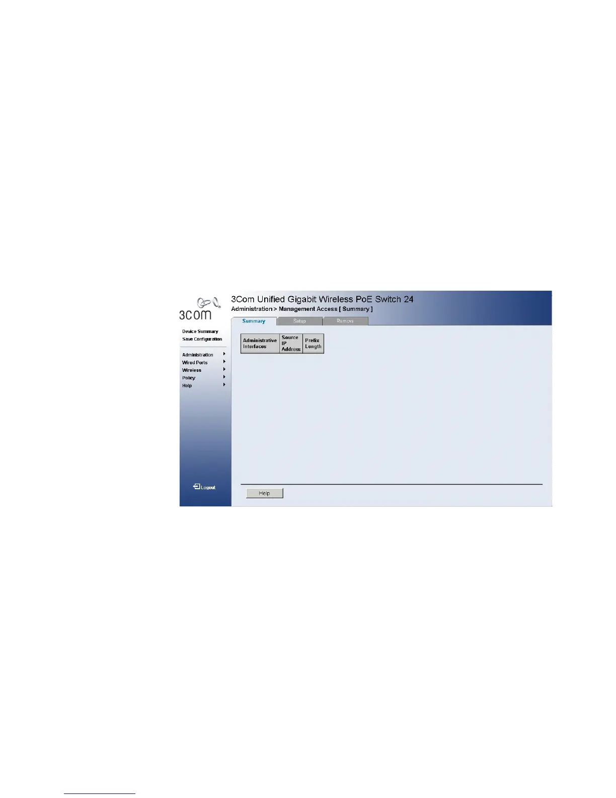 between source IP Addresses. The Management Access Summary Page