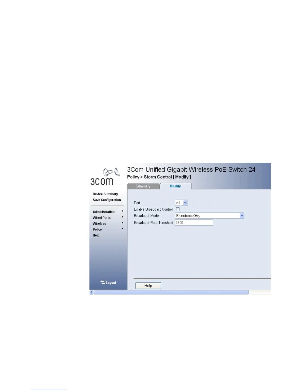 1 Click Policy > Storm Control > Modify. The Storm Control Modify Page