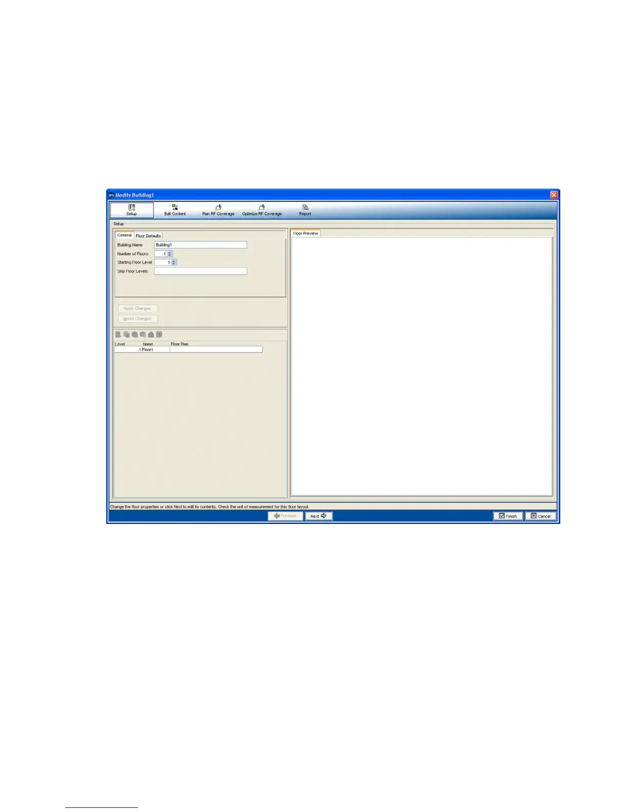 4 In the Starting Floor Level box, specify the floor number of the first floor
