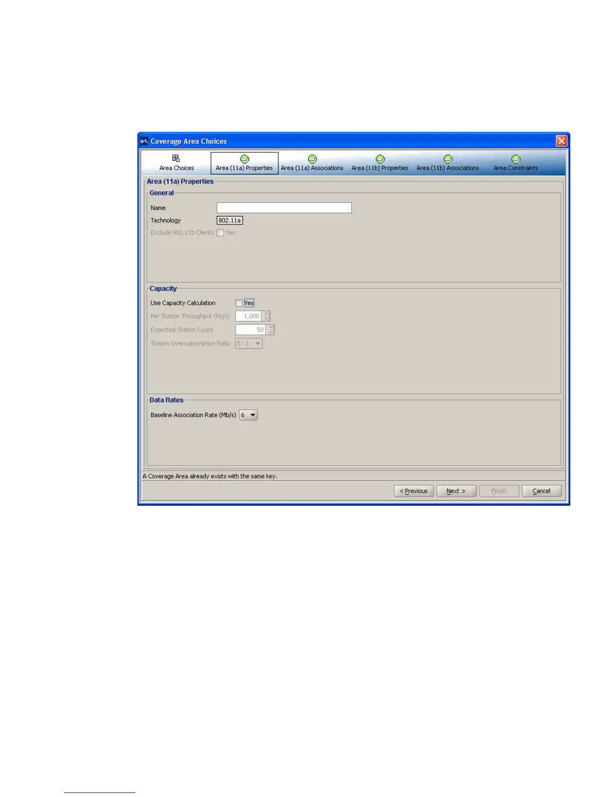 6 Specify the association information for the coverage area.
