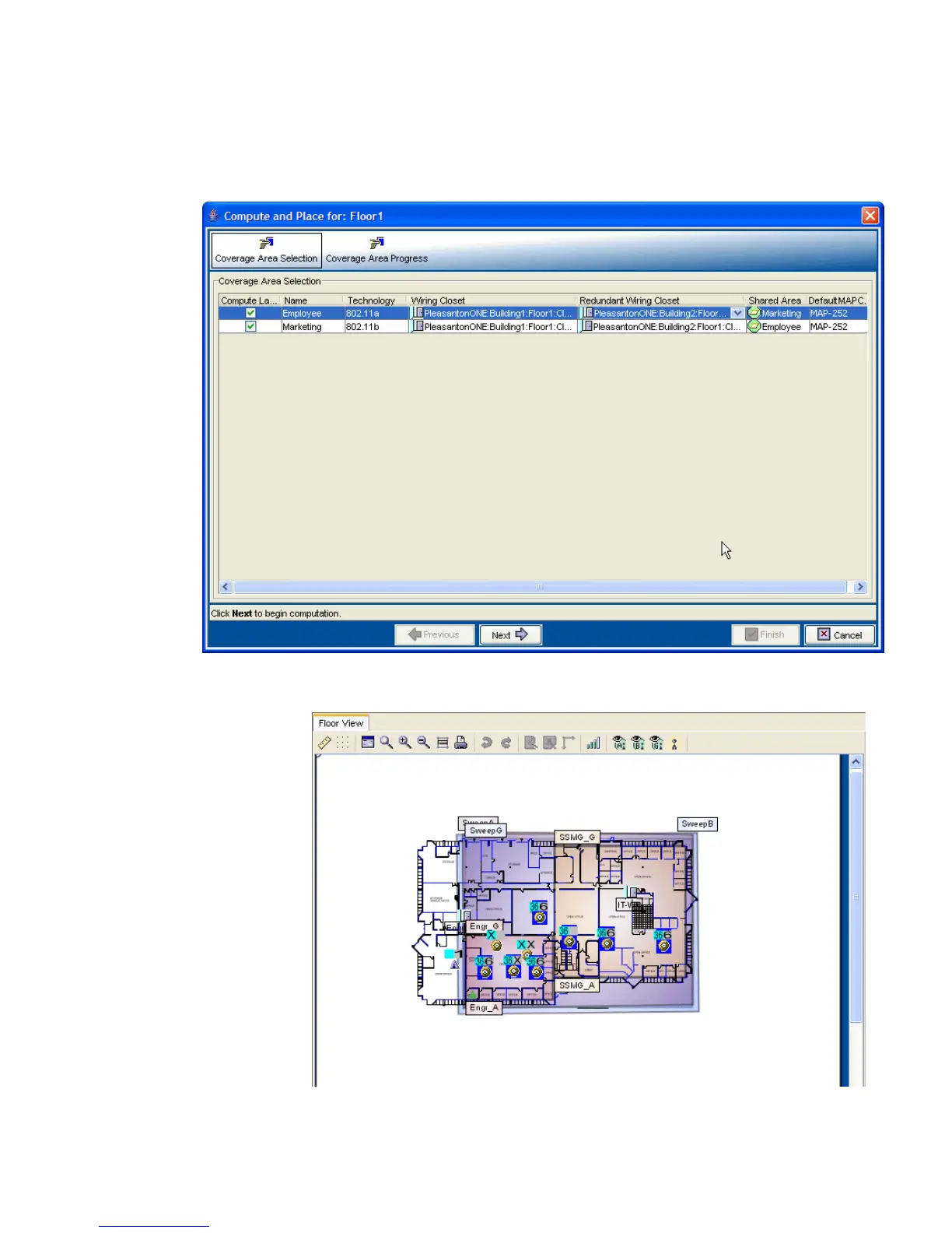 4 The Building wizard displays the location for the MAPs in each coverage area.