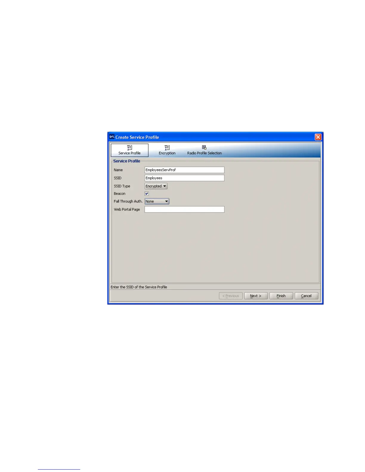 2 Enter the service profile and SSID names, and select SSID Type Encrypted.